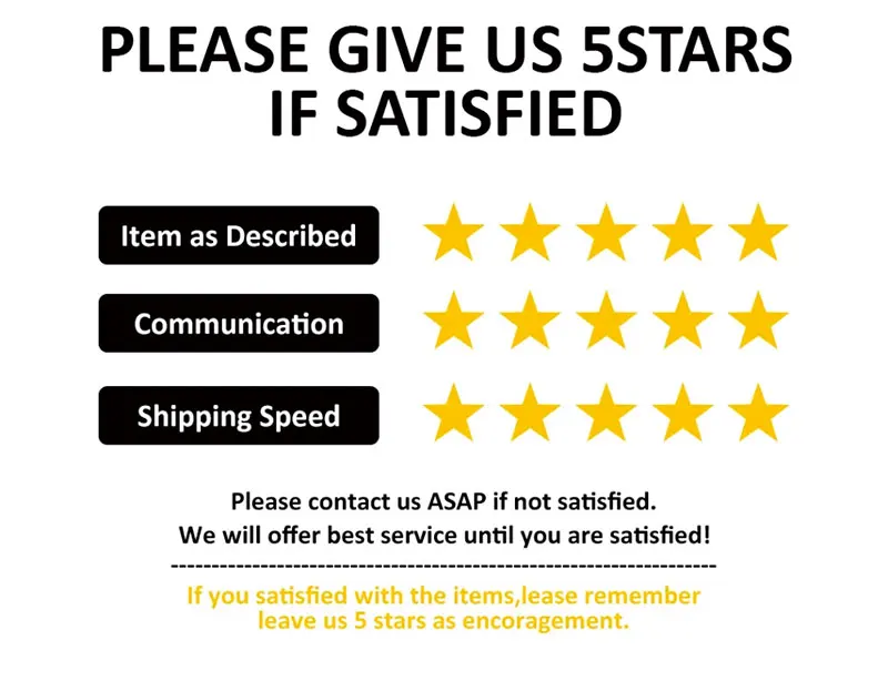 If you are satisfied with the product you get, please leave a positive feedback, 5 stars is most welcomed.